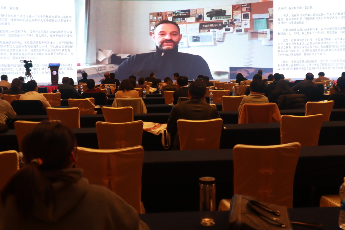 米夏埃爾·舒勒作《合肥學(xué)院-奧斯納布呂克應(yīng)用科學(xué)大學(xué)“一帶一路”合作》報告。他表示“一帶一路”倡議為中德合作發(fā)展提供了可能性,堅定了開展中德合作物流專業(yè)教學(xué)項目的信心。該項目不僅傳播了各國文化,也帶動了經(jīng)濟上的發(fā)展,希望進(jìn)一步共同發(fā)展、合作共贏。隨后他通過一段視頻展現(xiàn)了參與此項目學(xué)生的歷程與體會。