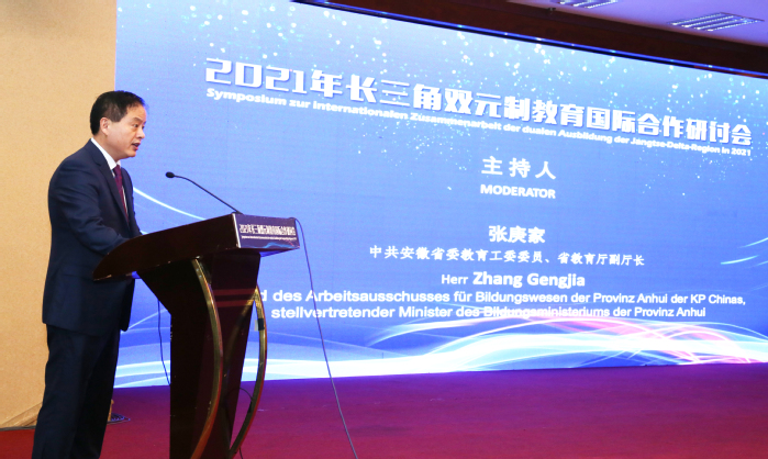 長三角雙元制教育國際合作研討會(huì)的召開,將進(jìn)一步發(fā)揮安徽在中德合作、雙元制協(xié)同培養(yǎng)人才領(lǐng)域的先行優(yōu)勢和先進(jìn)經(jīng)驗(yàn),整合校企合作培養(yǎng)人才在應(yīng)用型高等教育、高等及中等職業(yè)教育領(lǐng)域的資源,推進(jìn)人才鏈、產(chǎn)業(yè)鏈、教育鏈、創(chuàng)新鏈有機(jī)統(tǒng)一和長三角一體化發(fā)展戰(zhàn)略,服務(wù)新階段現(xiàn)代化美好安徽建設(shè)。合肥學(xué)院將抓住發(fā)展機(jī)遇,持續(xù)深化雙元制高等教育改革,大力推進(jìn)專業(yè)、就業(yè)、產(chǎn)業(yè)“三業(yè)一體”,為省市高質(zhì)量發(fā)展持續(xù)輸送高素質(zhì)人才。