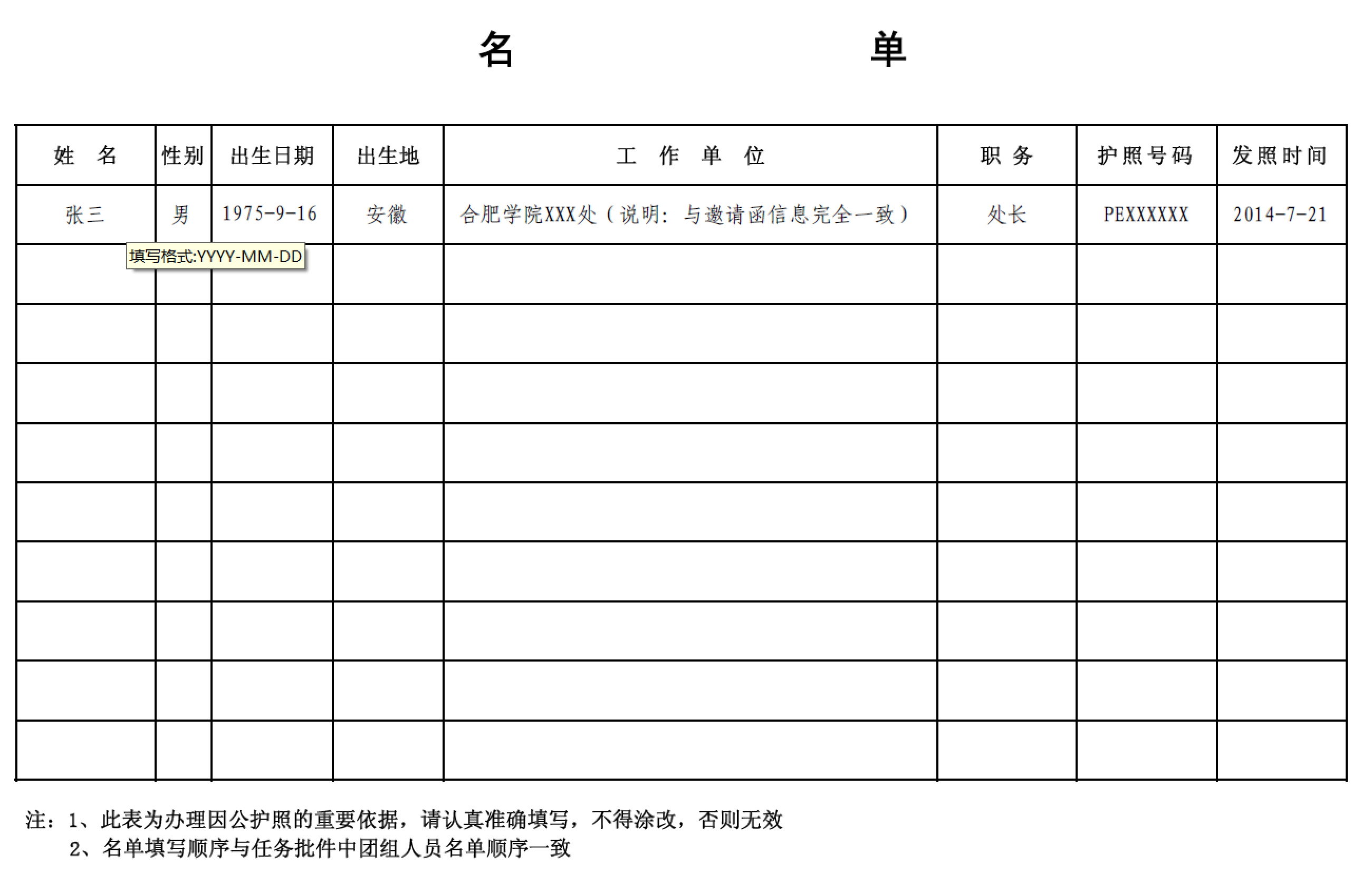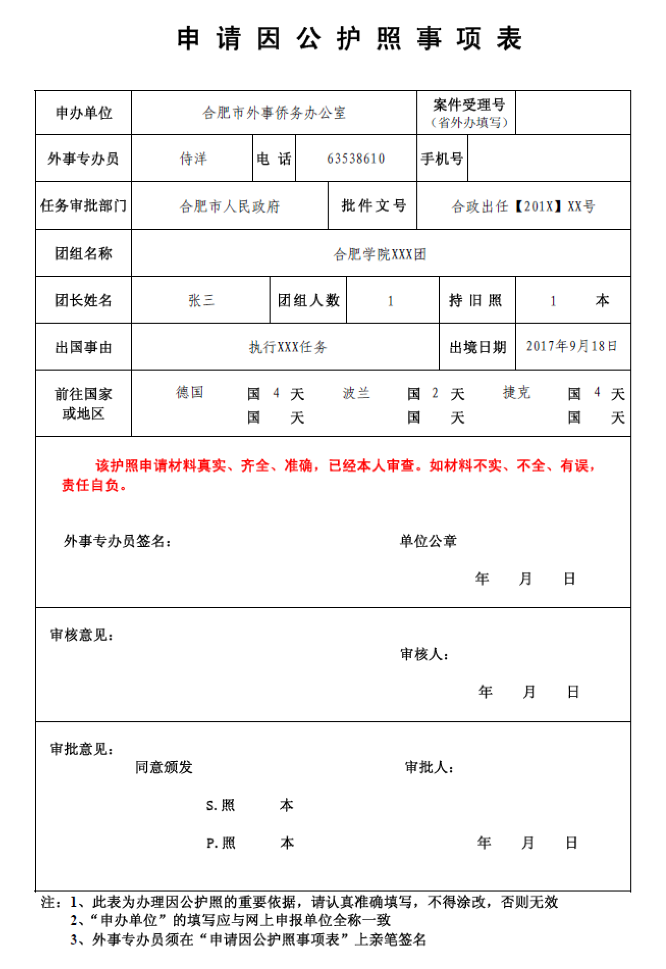 申請因公護照事項表