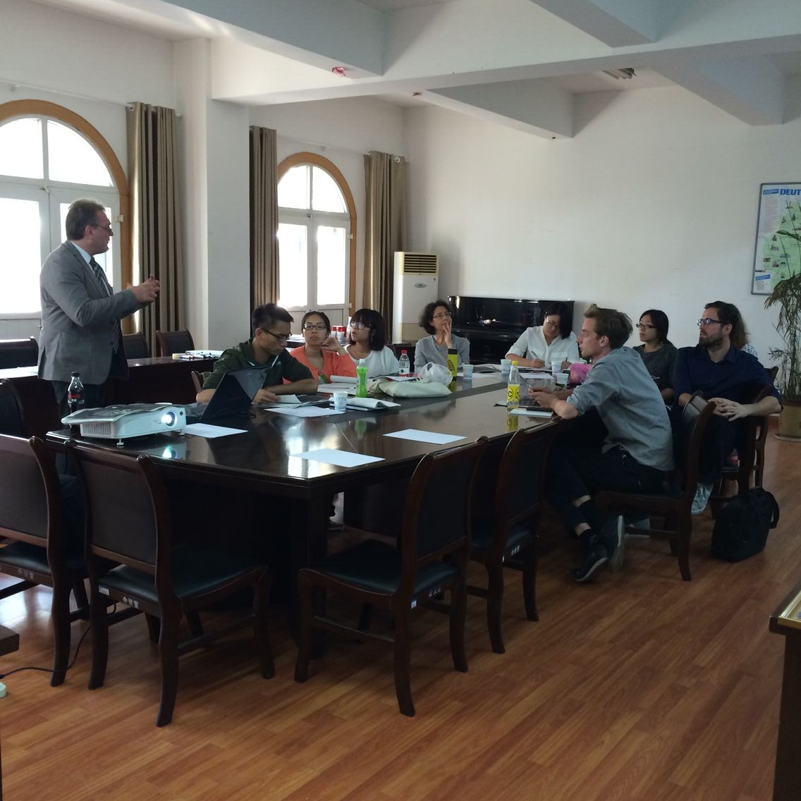 在肥期間,格里查先生與LOGinCHINA項目的德語教師進行深入交流,有針對性地對教師進行教學指導。并分別兩次在國際教育學院開展了集中培訓。