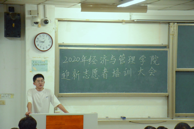 2020年9月13日,經濟與管理學院迎新志愿者培訓大會于一區博學樓B座107教室順利召開。會議由青年志愿者服務團團長宋世佳、副主席李奕主持召開,我院迎新志愿者們前來參加。