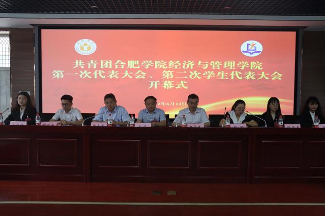 2022年6月12日,共青團合肥學院經濟與管理學院第一次代表大會、第二次學生代表大會開幕式順利舉行。出席本次大會的領導老師有合肥學院團委王玉老師、經管學院黨委書記楊學春老師、經管學院黨委副書記張永軍老師等,受邀出席大會的嘉賓有合肥學院學生會執行主席汪欣楠以及各兄弟學院學生會主席,全體學生代表參會。
