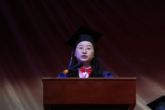 研究生畢業(yè)生代表張林婧同學(xué)發(fā)言,表示一定會牢記領(lǐng)導(dǎo)、老師們對所有畢業(yè)生的厚望,帶著耕耘三年的收獲奔赴四方,帶著新時代青年的熱血激情服務(wù)社會、貢獻祖國。