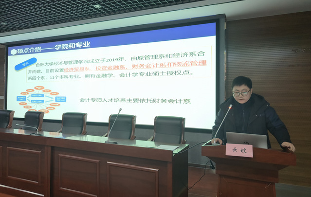 12月19日下午,經濟與管理學院于一期校園六棟一樓報告廳召開金融和會計專碩教育發展研討會,經濟與管理學院領導、校外兼職導師及企業導師、校內導師代表、投資金融系系主任、財務會計系系主任、金融和會計專碩點負責人及23級金融專碩和會計專碩研究生參加會議,副院長吳悅主持會議。