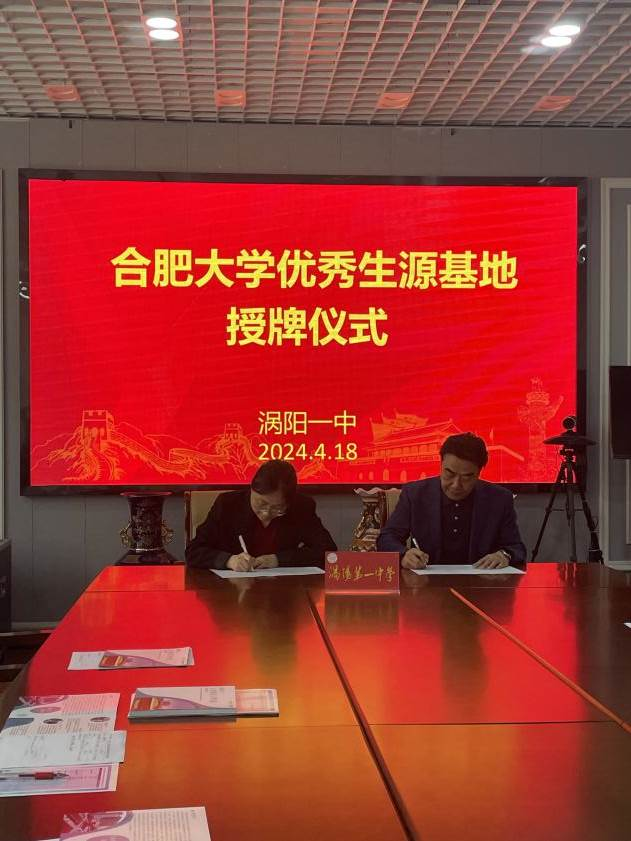為積極發(fā)揮高校學(xué)科與人才培養(yǎng)優(yōu)勢(shì),進(jìn)一步加強(qiáng)高校與中學(xué)的交流合作,2024年4月18日上午,經(jīng)管學(xué)院與先進(jìn)制造學(xué)院前往安徽省渦陽(yáng)縣育萃中學(xué)和渦陽(yáng)縣第一中學(xué)進(jìn)行“優(yōu)質(zhì)生源基地”簽約授牌儀式。經(jīng)濟(jì)與管理學(xué)院副院長(zhǎng)于娜、先進(jìn)制造工程學(xué)院黨委副書(shū)記蔡靈美、育萃高中許昆副校長(zhǎng)、尉言鵬主任以及渦陽(yáng)一中校長(zhǎng)袁馳、副校長(zhǎng)盛偉民等相關(guān)領(lǐng)導(dǎo)參加儀式。