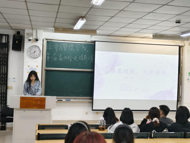 為了進一步展現校園文化生活的繁榮,全面提高我校學生綜合素質,5月27日晚,由經濟與管理學院承辦的以“春日拾光”為主題的攝影比賽決賽于一期4-107教室開展。