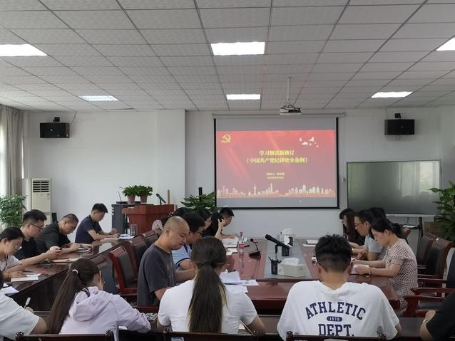 隨后,由倪澤強領學《中國共產黨紀律處分條例》對違反群眾紀律行為的處分部分。倪澤強強調,作為黨員領導干部,要以身作則,發揮表率作用,帶頭遵守黨的紀律,確保自己的言行始終符合黨的要求。最后,學院副院長于娜對違反群眾紀律行為的處分部分作深入的解讀,同時也對黨員干部接下來的工作提出了具體要求。