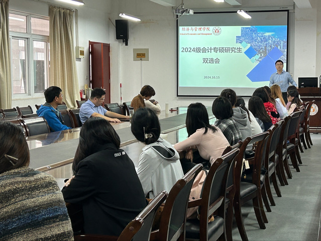 10月15日下午,經濟與管理學院舉行2024級研究生雙選師生見面會。經濟與管理學院副院長吳悅、全體具備24級指導資格的41位碩士生導師、金融碩士點專業負責人、會計碩士點專業負責人及全體24級研究生參加了會議。