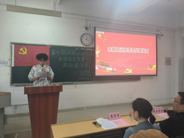 為加強(qiáng)入黨積極分子的培養(yǎng),提升學(xué)生黨員的發(fā)展質(zhì)量,2024年5月8日中午,經(jīng)濟(jì)與管理學(xué)院分黨校第十期入黨積極分子培訓(xùn)班開(kāi)班典禮暨第一課在4棟103、107教室同時(shí)舉辦,經(jīng)濟(jì)與管理學(xué)院黨委書(shū)記倪澤強(qiáng)、黨委副書(shū)記夏丹青、第十期入黨積極分子培訓(xùn)班班主任王晨森、陳維浩及247名入黨積極分子參加典禮。 開(kāi)班典禮上,第十期入黨積極分子學(xué)生代表23級(jí)財(cái)務(wù)管理三班李琦同學(xué),分享了自己對(duì)中國(guó)共產(chǎn)黨的深刻認(rèn)識(shí)并承諾在黨課學(xué)習(xí)中嚴(yán)于律己、努力學(xué)習(xí)。隨后,支部書(shū)記陳維浩對(duì)本期培訓(xùn)班學(xué)員提出紀(jì)律要求,鼓勵(lì)學(xué)員認(rèn)真學(xué)習(xí),領(lǐng)會(huì)黨課知識(shí)內(nèi)涵,并在日常學(xué)習(xí)、生活等方面爭(zhēng)當(dāng)先鋒模范。最后,夏丹青副書(shū)記作動(dòng)員講話(huà),她希望同學(xué)們珍惜本次黨課學(xué)習(xí)機(jī)會(huì),端正入黨動(dòng)機(jī),樹(shù)立為共產(chǎn)主義事業(yè)奮斗終生的理想信念。 開(kāi)班典禮結(jié)束后,黨委書(shū)記倪澤強(qiáng)為全體學(xué)員講授本期培訓(xùn)班第一課:《增進(jìn)民生福祉,推進(jìn)應(yīng)用型高水平大學(xué)高質(zhì)量發(fā)展》。倪澤強(qiáng)向全體學(xué)員簡(jiǎn)要分析了二十大報(bào)告提出的新要求,表達(dá)了高校實(shí)現(xiàn)“增進(jìn)民生福祉”的內(nèi)涵在于以學(xué)生為中心,努力為學(xué)生解決急難愁盼問(wèn)題,特別是學(xué)生關(guān)心的就業(yè)問(wèn)題。倪澤強(qiáng)表示,當(dāng)代大學(xué)生應(yīng)端正就業(yè)觀念,做好職業(yè)規(guī)劃,客觀看待個(gè)人條件和社會(huì)需求,從實(shí)際出發(fā)選擇職業(yè)和工作崗位,并在實(shí)踐中逐步成長(zhǎng)。 本次培訓(xùn)班開(kāi)班典禮暨第一課,是對(duì)我院入黨積極分子進(jìn)行系統(tǒng)培訓(xùn)的重要環(huán)節(jié),對(duì)于提高學(xué)員們黨性修養(yǎng)和政治素質(zhì)具有重要推進(jìn)作用。全體學(xué)員表示要珍惜這次學(xué)習(xí)機(jī)會(huì),努力學(xué)習(xí),積極向一名合格黨員看齊。 (經(jīng)濟(jì)與管理學(xué)院 撰稿人:儲(chǔ)晨 初審:王晨森 復(fù)審:余宏強(qiáng) 終審:倪澤強(qiáng)) |