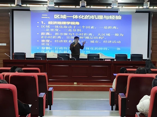 2023年12月28日下午,經濟與管理學院在6棟一樓學術報告廳舉行了本年度最后一期“新文科經管大講堂”,主題為“新發展格局與長三角一體化”,安徽大學宋宏教授主講。經濟與管理學院教師、23級金融和會計專業研究生及部分本科生等共100余人到場聆聽。經濟與管理學院院長陳江華主持。 宋教授從國家發展重大空間戰略出發,梳理了長三角一體化的發展歷程,分析了國家空間戰略演變的客觀成因,從經濟地理學的視角,從理論和實踐兩個方面介紹了國內外區域一體化的機理與經驗。在分析長三角一體化的經濟、社會與生態發展條件時,他指出長三角地區在經濟總量、全員勞動生產率上均居全國前列,科教資源豐富,擁有上海張江、安徽合肥兩個綜合性國家科學中心,通江達海、承東啟西,交通便利,具有優異的發展基礎。在此基礎上,宋教授闡述了安徽順應長三角一體化趨勢的經濟發展思路,高質量推進“一圈五區”建設,強化創新能力建設,積極承接產業轉移。 陳江華院長在總結中勉勵師生學習宋教授的戰略思維,積極提升服務地方經濟社會發展的水平和能力,持續推進應用經濟學學科建設。 宋宏教授原任安徽日報理論部主任,現任安徽大學創新發展研究院副院長、研究員,并擔任安徽省長三角一體化專家委員會專家、省政府參事室特約研究員、央行貨幣政策委員會調查專家與中國區域經濟學會長三角專家委員會專家。 (經濟與管理學院 撰稿人:邱彤 審稿人:戴昕晨) |