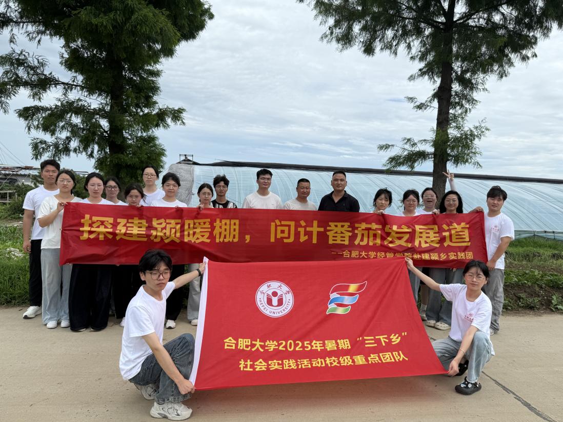6月29日,合肥大學經濟與管理學院“潁領風番”團隊在陳思超老師的帶領下,前往安徽省潁上縣建潁鄉二龍村番茄種植暖棚基地,探索鄉村振興的產業發展。