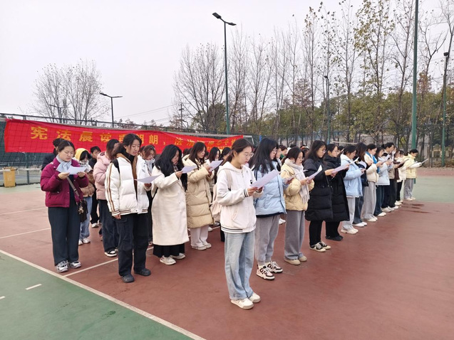 為了提高學生的憲法意識和學法熱情,經管學院開展2024年“憲法宣傳周”活動。 12月13日清晨,參加活動的學生以飽滿的精神狀態在一期校園體育場集合?;顒右潦?,全體學生排好隊形,整齊肅立。隨后,在領讀同學的帶領下,一起朗讀《憲法》的節選內容。天氣雖然寒冷,但我院學子神情專注而又莊重,朗讀聲清晰而又堅定。在每一聲鏗鏘有力的聲音中,學生們用昂揚向上的熱情驅散了寒意,用奮進拼搏的姿態推動了憲法晨讀活動走向高潮。 此次順利舉辦的憲法晨讀活動,不僅是一次簡單的朗讀,更是一次深刻的法治教育洗禮,推動我院學子學會運用憲法思維去思考問題,用憲法精神去塑造品格,在日常生活中自覺維護憲法權威,積極踐行法治理念,促使憲法精神在合大校園里生根發芽。同時,經過本次活動,憲法的光輝在我院學子心中閃耀,潛移默化中增強了他們的法治觀念和憲法意識。 (經濟與管理學院撰稿人:熊洪悅 初審:程越岳 復審:余宏強 終審:夏丹青 ) |