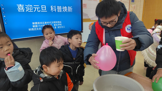 12月28日下午4點,在朝霞居委會內,來自合肥大學能源材料與化工學院的3名志愿者在朝霞居委會開設了靜電科普小課堂,為朝霞社區的小朋友們科普有關靜電的常識。