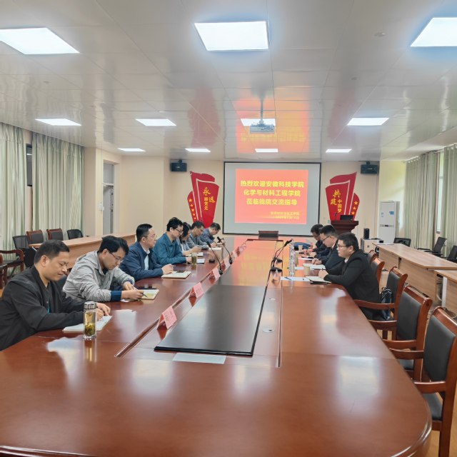 4月16日安徽科技學(xué)院化學(xué)與材料工程學(xué)院副院長葉龍強(qiáng)無機(jī)非金屬材料工程系主任周永生、新能源材料與器件系主任宋忠明、材料科學(xué)與工程系智能材料與結(jié)構(gòu)系主任陳俊明等一行來我院開展調(diào)研交流學(xué)院在生化樓北三樓大會(huì)議室召開座談會(huì),院長胡坤宏主持,副院長魯紅典和相關(guān)學(xué)科負(fù)責(zé)人參加。