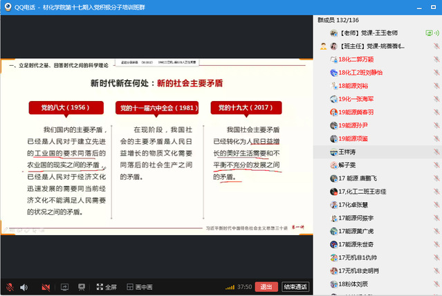 為了加強對入黨積極分子的培訓工作,深化黨的性質與指導思想,進一步提高入黨積極分子的黨的基礎理論素養,5月22日晚六點半,材化學院第十七期入黨積極分子培訓于線上順利開展。此次授課由材化學院黨委副書記王玉主講。