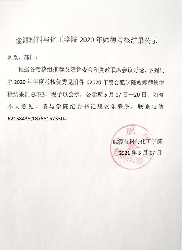 單位(蓋章):能源材料與化工學院                                          2021年5月18日