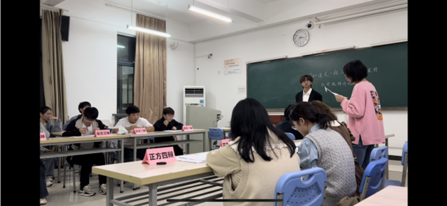 為了豐富學生們的課余生活,10月23號晚上七點在能源材料與化工學院學生會學習部和各班委安排組織下,我院在生化樓201如期舉辦了“一二?九”辯論賽選拔半決賽。擔任本次辯論賽的評委是學習部前任部長席賽文,學習部現任部長梁家惠張鈺穎,對外交流部部長王蕾茹。正方為“你們說的都隊”反方為“你在跟我作隊”。