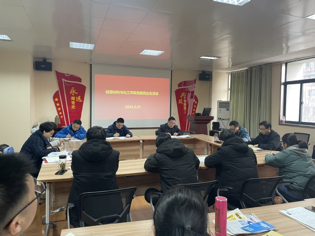 2023年2月21日下午,能源材料與化工學院黨委在34棟材化學院學術中心召開了2022年度專題民主生活會。學校黨委副書記劉建中和黨委組織部副部長楊紅到會指導。學院領導班子成員、黨委委員參加會議,院長胡坤宏、科級干部和教工支部書記列席會議,會議由院黨委書記劉沛平主持。