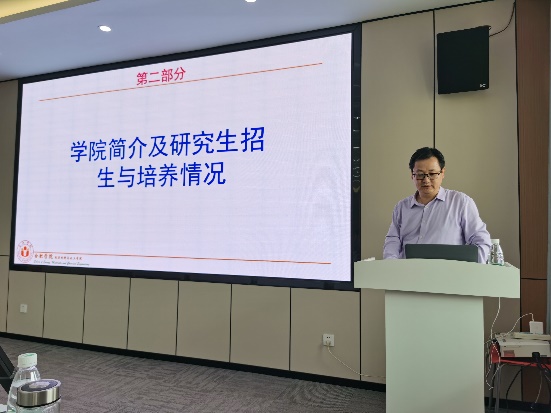 學術報告結束后,胡院長向三年級本科生介紹了我院2024年研究生招生與培養情況,全方位展示了我院的發展歷程、學科碩士點建設、科研成果、導師隊伍和校園環境等,并邀請同學們今年暑假到合肥學院來參觀學習。鄧崇海副院長介紹了近幾年我院研究生的報考和招生以及獎學金具體情況,結合當前是我院即將迎接教育部專家進??疾旄髮W的大好發展機遇,以及20級聯合培養畢業生支國偉同學的科研成果展示,動員并鼓勵大家第一志愿填報我院2024年碩士研究生。