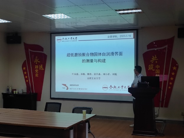 葉家鑫教授在學院學術會議中心作了一場題為“超低磨損聚合物固體自潤滑界面的測量與構建“的學術報告,學院胡恩柱教授、徐勇博士等教師與20名研究生聽取了報告。報告后,葉教授就自己的研究成果與在座的同學和老師展開討論,明確了兩校今后合作的方向,并就相關專業合作達成意向。同時,在胡恩柱教授的陪同下,葉教授參觀了我院綠色潤滑與表面技術研發團隊的實驗室,他對我院在摩擦學領域的研究能力與水平給予了充分肯定,表達了對今后兩校合作充滿了信心。