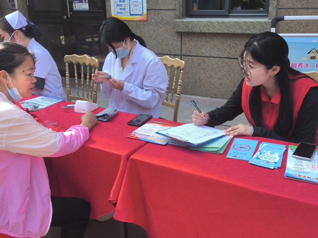 傳遞健康,關愛守護,為了給小區居民的健康生活提供便利,提高居民健康意識,提升居民健康水平,營造和諧社區氣氛,丹霞社區開展了便民義診,志愿者幫助現場義診的醫護人員登記前來測血壓、血糖的居民的信息,在進行測量,并根據測量結果給與相應的健康建議。這項服務不僅能讓居民及時了解自己的血壓狀況,也提高了大家對自身健康的重視程度。
