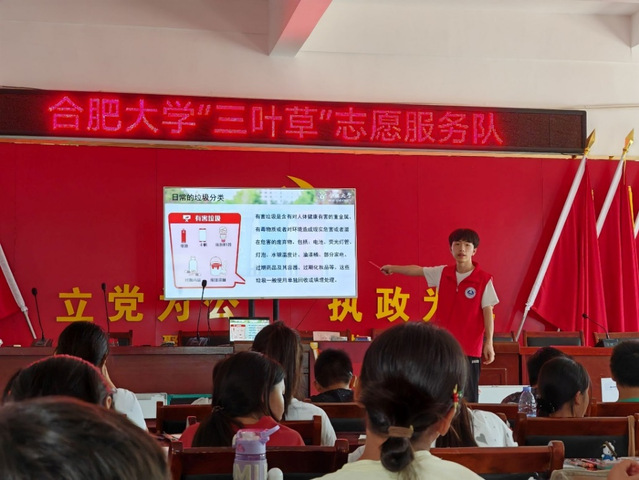“寶劍鋒從磨礪出,梅花香自苦寒來”,2024年7月19日,鄉間的一縷縷清風將合肥大學能源材料與化工學院“三葉草”實踐團隊在宿州市忠陳村的支教實踐活動的日歷發條輕輕撥到了第四天的位置。團隊成員也在生物鐘的提醒下早早地進入了備課上課的狀態。清晨的空氣中彌漫著露水的清香,陽光透過樹葉間的縫隙灑在簡陋的教室外,仿佛在為這群年輕的志愿者們加油打氣。