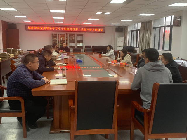 2022年11月15日城建學院黨委理論學習中心組學習習近平總書記在黨的二十大閉幕時的重要講話精神,學習安徽省委書記鄭柵潔在全省傳達學習黨的二十大精神大會上的講話精神。