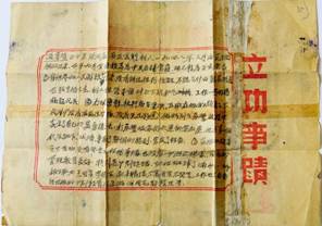 那份西北野戰軍的報功書,講述著張富清“因在陜西永豐城戰斗中勇敢殺敵”,榮獲特等功。那是一次攻堅戰,戰況異常慘烈,“一夜之間換了三個營長、八個連長”。