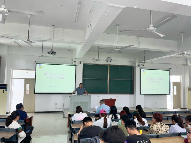 2024524日中午,城市建設與交通學院土木工程系于413JT教室召開21級土木工程專業生產實習動員會。會議由土木工程系主任馬翠玲主持,學院黨委書記張永軍、副院長劉偉、生產實習指導老師及21級土木工程全體學生參加此次動員會。