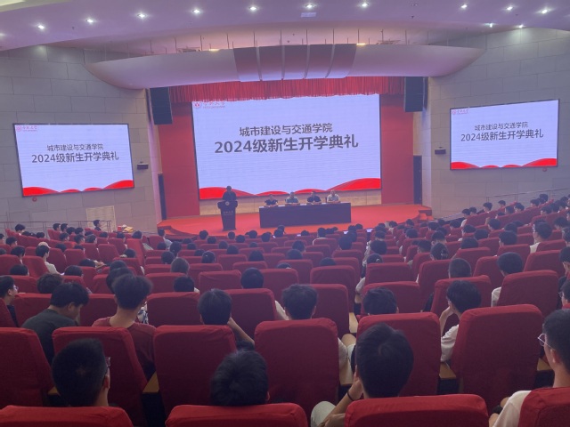 2024年9月14日下午,城市建設與交通學院在圖書館報告廳A廳舉行2024級新生開學典禮,出席本次開學典禮的有城市建設與交通學院黨委書記張永軍、院長華建兵、副院長祝磊、各專業教師代表、新生輔導員和城市建設與交通學院2024級全體新生。本次會議由城市建設與交通學院黨委副書記高喬楠主持。