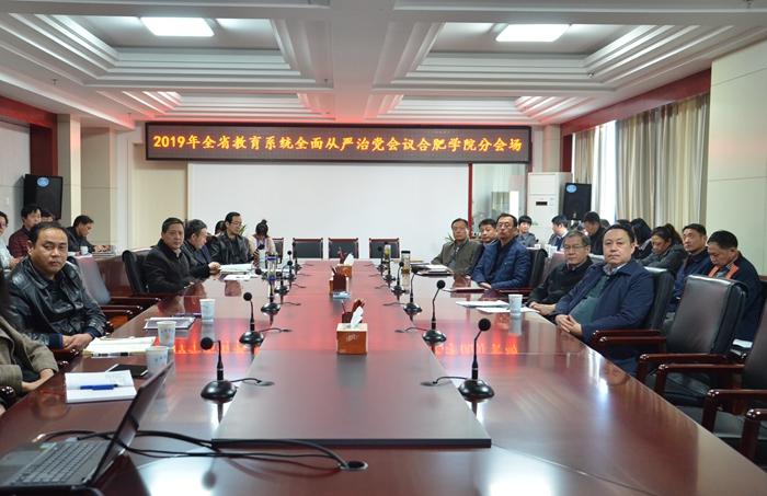 3月11日,安徽省2019年全省教育系統全面從嚴治黨工作視頻會議召開,安徽省委教育工委書記錢桂侖發表重要講話,省紀委監委駐省教育廳紀檢監察組組長王光虎主持會議。合肥學院于行政樓九樓東會議室設立分會場。校黨委書記蔡敬民,黨委副書記、校長王其東,院直各部門及各系主要負責人參加會議。
