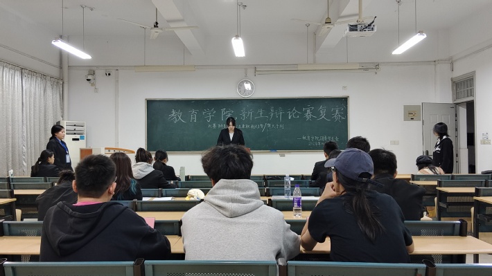 10月24日18時30分,教育學院新生辯論賽復賽第一場在一期3棟303舉行,評委分別為經濟與管理學院劉正宇、城市建設學院畢文鑫以及外國語學院雷創。任藝擔任本場比賽主持人。