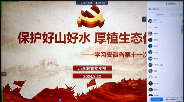 為貫徹學習習近平生態文明思想,落實安徽省第十一次黨代會關于生態文明建設的戰略部署,為綠色發展、美麗中國建設貢獻青年力量,小教黨支部于3月22日晚開展了以“保護好山好水 厚植生態優勢”為主題的黨日活動。考慮到大部分大四黨員仍未返校,此次活動通過騰訊會議的形式在線上開展。 活動開始時,支部書記王多慈帶領支部黨員共同學習了習近平生態文明思想,以及安徽省第十一次代表大會會議精神。王老師指出,青年黨員應肩負起全面推進美麗中國建設、加快推進人與自然和諧共生的現代化的時代責任。接著,支部黨員在群聊中積極發表感想,通過相互交流學習到了如何更好地將生態文明建設付諸實踐,堅定自身推動生態文明建設的使命感和責任感。在活動的最后,支部黨員周天藝帶領大家進行了“生態知識我知道”的搶答小游戲,大家都踴躍參與其中,并表示這樣的趣味小游戲讓自己對于如何更好為生態文明建設貢獻青年力量有了進一步的幫助。 通過此次主題黨日活動,小教黨支部進一步認識到了生態文明建設的重要性和緊迫性。支部將認真學習宣傳貫徹安徽省第十一次黨代會精神,緊緊圍繞“學思想、強黨性、重實踐、建新功”總要求,持續加強思想政治建設。(撰稿:周天藝 審稿:王多慈) |