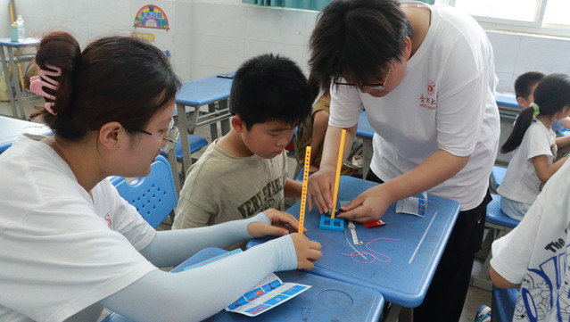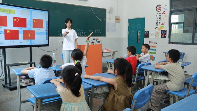 7月7日下午,合肥大學教育學院“同筑鄉村夢,共‘育’振興果”志愿服務隊在合肥市小廟鎮蜀山行知學校開展了暑期“三下鄉”社會實踐活動。教師黃秋語給孩子們帶來一堂理論與實踐相結合的愛國主義教育課,讓孩子們認識我國不同種類的旗幟并了解它們背后的故事。
