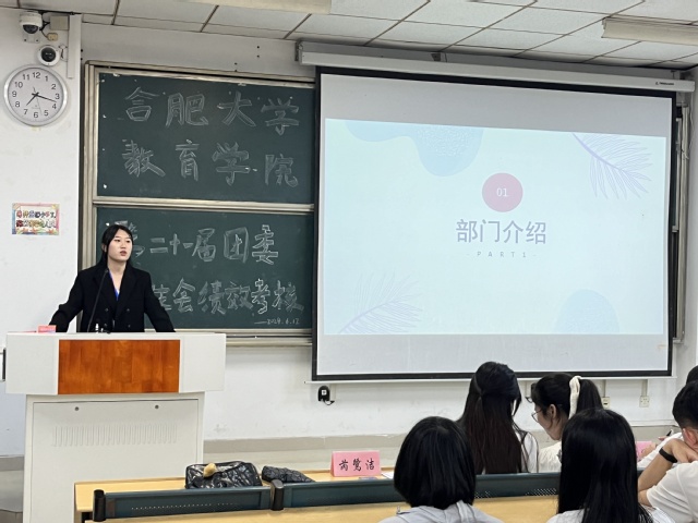 為了展示團委學生會各部門在過去一年的工作成果,增進學生會內部溝通與交流,推動學生會工作更好開展6月12日晚7點,教育學院第21屆團委學生會部門績效考核在三棟101教室舉行團委學生會全體成員及主席團成員參加,葛雨欣主持。