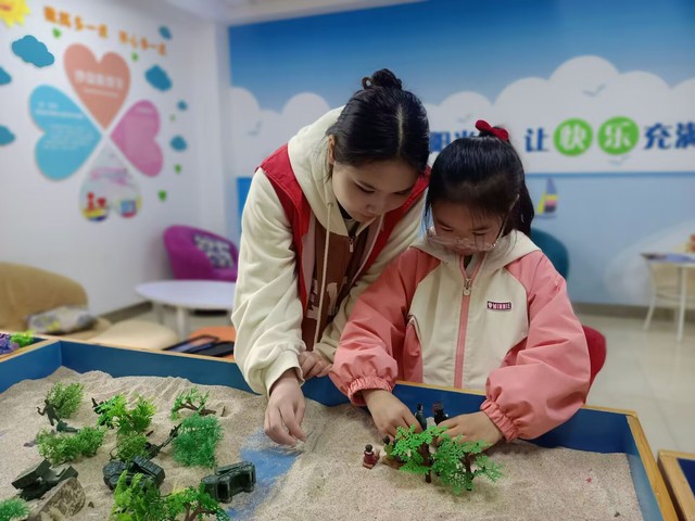 活動開始,為了拉近與孩子們之間的距離,志愿者帶領(lǐng)小朋友們首先進(jìn)行了熱身環(huán)節(jié)——“好朋友們抱一抱”游戲,活躍了現(xiàn)場的氣氛。隨后,志愿者引導(dǎo)小朋友們參與沙盤活動在這一環(huán)節(jié),小朋友們盡情發(fā)揮自己創(chuàng)意與想象力,構(gòu)建獨(dú)屬于自己的沙盤世界每一個沙盤作品都凝聚了小朋友們的智慧和想象,展現(xiàn)了他們獨(dú)特的內(nèi)心世界。活動結(jié)束后,志愿者們對小朋友們的沙盤作品進(jìn)行了分析,從他們的作品中洞察他們的性格特點(diǎn)與潛在需求。同時,志愿者們還與家長們進(jìn)行了深入的交流,分析孩子們在活動中的表現(xiàn)和收獲。