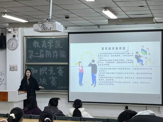 此次反詐知識競賽的成功舉辦,進一步營造了教育學院積極參與反詐宣傳的濃厚氛圍。今后,教育學院將繼續加強反詐宣傳教育工作,不斷提升師生們的反詐意識和自我保護能力,為構建平安、和諧、穩定的校園環境貢獻力量。(撰稿:汪藍天、趙文豪 審核:張弦樂)