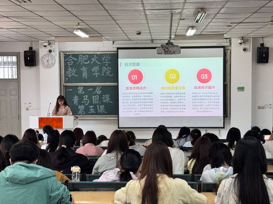 4月29日,合肥大學(xué)教育學(xué)院第一屆青馬團(tuán)課第五課在3棟301教室順利開講。本次團(tuán)課以“民營經(jīng)濟(jì)正當(dāng)時(shí),青年學(xué)子展擔(dān)當(dāng)”為主題,旨在引導(dǎo)同學(xué)們深入了解民營經(jīng)濟(jì)的發(fā)展現(xiàn)狀、機(jī)遇與挑戰(zhàn),并激勵(lì)他們在民營經(jīng)濟(jì)領(lǐng)域施展才華、勇?lián)?zé)任。 本次青馬團(tuán)課邀請24級小學(xué)教育研究生班團(tuán)支書張智鵬同學(xué)作為主講人上臺授課。她以PPT為輔助,結(jié)合自身的實(shí)踐經(jīng)驗(yàn)和對民營經(jīng)濟(jì)的深入研究,為同學(xué)們呈現(xiàn)了一堂生動(dòng)而富有啟發(fā)性的課程。張智鵬介紹了民營經(jīng)濟(jì)的發(fā)展歷程和現(xiàn)狀,讓同學(xué)們對民營經(jīng)濟(jì)有了更加全面和深入的了解。她指出,民營經(jīng)濟(jì)已經(jīng)成為推動(dòng)我國經(jīng)濟(jì)社會發(fā)展的重要力量,具有靈活性強(qiáng)、創(chuàng)新活力足等優(yōu)勢。 在授課過程中,張智鵬特別強(qiáng)調(diào)了青年在民營經(jīng)濟(jì)發(fā)展中的重要作用。她指出,青年學(xué)子具有創(chuàng)新思維、敢于冒險(xiǎn)、善于利用新技術(shù)等特質(zhì),這些特質(zhì)與民營經(jīng)濟(jì)的靈活性、創(chuàng)新性和市場導(dǎo)向性高度契合。同時(shí),她也通過PPT向同學(xué)們展示了《中國青年創(chuàng)業(yè)發(fā)展報(bào)告》中的相關(guān)數(shù)據(jù),指出Z世代創(chuàng)業(yè)者占比達(dá)24%,這些青年創(chuàng)業(yè)者憑借對市場的敏銳洞察力和對新技術(shù)的快速應(yīng)用能力,推動(dòng)了民營經(jīng)濟(jì)在數(shù)字經(jīng)濟(jì)、文化創(chuàng)意等領(lǐng)域的創(chuàng)新發(fā)展。此外,她還分享了獵聘報(bào)告中的數(shù)據(jù),指出數(shù)字經(jīng)濟(jì)領(lǐng)域青年人才需求年增35%,民營企業(yè)作為數(shù)字經(jīng)濟(jì)發(fā)展的主力軍,急需大量具備創(chuàng)新能力和專業(yè)技能的青年人才。 隨著團(tuán)課的圓滿結(jié)束,同學(xué)們不僅收獲了知識,更點(diǎn)燃了對未來的無限熱情。同學(xué)們深刻意識到,民營經(jīng)濟(jì)不僅是國民經(jīng)濟(jì)的生力軍,更是他們揮灑青春汗水、實(shí)現(xiàn)個(gè)人價(jià)值和社會價(jià)值的廣闊天地。在合肥大學(xué)的培育下,同學(xué)們將以扎實(shí)的專業(yè)知識為帆,以創(chuàng)新進(jìn)取的精神為槳,在民營經(jīng)濟(jì)蓬勃發(fā)展的時(shí)代浪潮中勇立潮頭,踐行新時(shí)代青年的使命擔(dān)當(dāng),為民營經(jīng)濟(jì)高質(zhì)量發(fā)展注入青春力量,用實(shí)際行動(dòng)踐行“民營經(jīng)濟(jì)正當(dāng)時(shí),青年學(xué)子展擔(dān)當(dāng)”的青春誓言,用智慧和勇氣書寫屬于自己的青春篇章。(教育學(xué)院撰稿:高嘉琦 一審:張弦樂 二審:符琳 三審:王迅) |