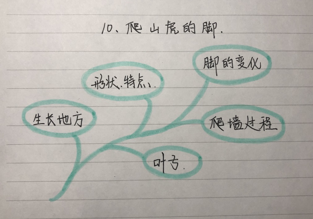1、圖片導入:出示葡萄藤和爬山虎的兩張圖片。 師:同學們,大家抬頭看大屏幕上的這兩幅圖片,它們是什么呢?(生答) 師:對的,是葡萄藤和爬山虎。那現在再請同學們仔細觀察一下,他們之間有什么不同呢?哦!一個有架子,一個沒架子。是呀,葡萄藤得攀著架子才能向上爬。那大家動動你們聰明的小腦袋想一想,沒架子的爬山虎靠著什么往上爬呢?(生答) 師:沒錯,是腳。這節課就讓我們跟隨著作者葉圣陶爺爺一起去了解一下爬山虎的腳吧。請同學們伸出小手和老師一起板書課題。(板書:爬山虎的腳) 2、初識作家。 (1)師:這篇課文的作者是葉圣陶爺爺,那么,你了解葉圣陶爺爺嗎? (2)師:老師看到了大家渴望知識的小眼神,請看大屏幕,老師來給大家介紹一下這位著名作家吧。葉圣陶,原名葉紹鈞,是我國著名的作家、教育家。他創作了新中國第一部童話集《稻草人》,有著“優秀的語言藝術家”之稱。 【設計意圖:認識作者對學生學習非常重要。出示圖片,與生活有機銜接,通過對比導入新課,激發學生學習興趣。通過課件呈現作者的簡介,初識作家葉圣陶先生及其作品,拉近與文章的距離,激發學生的閱讀期待。】 (二)、字詞教學,初讀課文 1、師:接下來,我們就走進《爬山虎的腳》一課,去領略葉圣陶爺爺筆下的爬山虎的真容。請同學們自由朗讀課文,讀準字音,讀通句子,遇到難讀的地方多讀幾遍。并思考,課文都寫了爬山虎的什么呢? 2、指導字詞 (1)師:老師看到大家讀的非常認真,相信屏幕上的生字一定難不倒你們。誰想來挑戰一下讀一讀?(指名回答) (2)注意指導多音字“曲”。 (3)師:同學們讀的字正腔圓,老師非常喜歡聽你們朗朗的讀書聲。但是這些字不僅要會讀,還要會寫。誰給大家做一個書寫上的提醒?(指名回答,指導“疊”字) (4)出示生字:操、順、均、隙、柄 師:請同學們觀察這些生字的字形,你有什么發現呢?(指名回答) 師:是的,這些字都有一個共同的特點,都是左右結構的字,在書寫上要注意左窄右寬。眼觀千遍不如手過一遍,請同學們在自己的練習本上工工整整地把這些生字寫上一遍。在寫的時候要注意坐姿,認真書寫。同學們寫得非常認真,大家都很棒。 3、梳理全文 (1)師:接下來,我們跟著黑板上這幅圖畫整體感知《爬山虎的腳》。請小組之間互相交流學習,完成這幅圖畫。 (2)小組之間交流討論。 (3)師:老師看到大家討論的非常激烈,看來你們一定都有了自己的答案。哪個小組先來說一說?(指名回答) (4)師小結:我們根據這幅圖畫,學會抓住關鍵詞句進行提煉,很快就知道文章寫了什么。作者按順序先寫了爬山虎生長的位置,再寫葉子,最后寫爬山虎的腳。 【設計意圖:本課生字較多,其中以左右結構為主,個別難寫字教師重點指導,讓學生能夠達成正確書寫生字的效果。通過提供圖畫填空的方法,讓學生自主感悟、探究和交流,實踐掌握概括課文主要內容的方法。】 (三)、深入學習,品味語言 1、師:那接下來請同學們再次默讀課文,注意不出聲,不指讀。邊讀邊勾畫出你最喜歡的部分,慢慢的讀,細細的品。(生自由默讀) 2、師:誰來分享一下?(指名回答)哦,你最喜歡的是爬山虎的葉子。你能給大家讀一讀嗎?(生讀)讀得真好,讓大家覺得仿佛爬山虎的葉子就在眼前呢。 2、課件展示描寫爬山虎的葉子的語句。 (1)師:請同學們仔細觀察這幾個語句,有誰想嘗試著讀一讀?(指名朗讀) (2)理解詞語:出示“舒服”。 師:“舒服”這個詞語是什么意思?(生自由說意思) 師:老師聽到大家都有著自己的見解,“舒服”是看上去會讓人覺得賞心悅目的意思。文中作者想要表達的就是這個意思。 (3)比較句子:出示課件 一陣風拂過,一墻的葉子就漾起波紋,好看得很。 一陣風拂過,一墻的葉子就蕩起波紋,好看得很。 師:這兩個句子哪句更恰當,為什么?(指導學生體會“蕩起”與“漾起”的不同含義) 師:請同學們閉上眼睛,想象風吹時爬山虎葉子之美,再用自己的情感讀出葉之美。(生自由想象、朗讀) (4)師:這句話寫出了爬山虎的動態美。我們一般描寫植物只會寫植物的靜態,而葉圣陶爺爺把爬山虎的動態也寫得惟妙惟肖,非常值得我們學習和借鑒。 【設計意圖:通過對詞語的理解、比較、想象等方法品味語言,體會用詞的準確,從而理解文本內容。同時,引導學生在反復朗讀中感悟作者的觀察方法,觀察習慣。】 (四)、教師總結,布置作業 1、師總結:作者為什么能把葉子寫得這么美呢? (生答:認真觀察)是的,所以我們要學習作者認真仔細地觀察事物的方法,養成良好的觀察習慣。爬山虎的葉子之所以生機勃勃地鋪滿墻,這跟它的腳有著密切的聯系,爬山虎的腳又是什么樣的呢?我們下節課繼續學習。 2、布置作業: (1)將自己不會的字詞再次書寫幾遍。 (2)背誦自己喜歡的語句。 【設計意圖:通過懸念式總結本課的學習內容,為下節課的學習做準備,激起學生的學習興趣。作業布置再次復習鞏固本節課的學習內容。】 (五)、板書設計 第二課時 (一)、復習導入,明確目標 1、聽寫詞語:操場、嫩莖、舒服、均勻、重疊、空隙、葉柄、枯萎、牢固。 2、師:上節課,我們初步學習了《爬山虎的腳》,了解了課文大致的內容,書寫了生字,并且了解了爬山虎生長的環境以及葉子的樣子。爬山虎的葉子給你留下了怎樣的印象呢?(生自由答) 3、師:文章題目是“爬山虎的腳”,作者先寫了爬山虎的葉子。這是為什么呢?