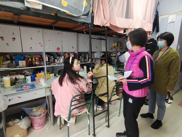 11月3日、4日,旅游與會(huì)展學(xué)院黨委書記黃雄英、黨委副書記孫靜宇、副院長(zhǎng)鄭嬗婷帶領(lǐng)輔導(dǎo)員深入學(xué)生宿舍,了解校園相對(duì)封閉管理期間學(xué)生的學(xué)習(xí)和生活情況,進(jìn)一步宣傳學(xué)校疫情防控規(guī)定。