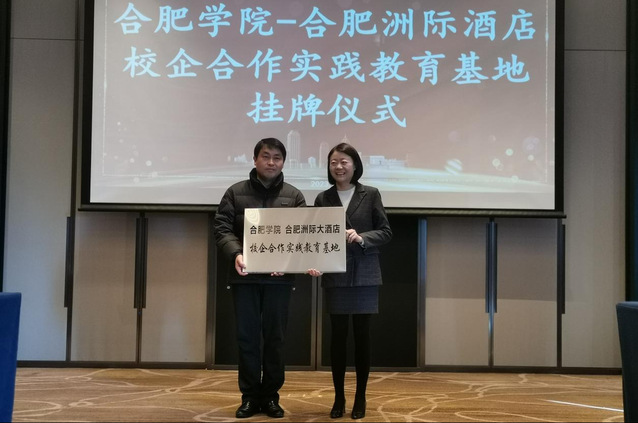 張應杰陳婕代表校企雙方舉行了合肥學院校企合作實踐教育基地”授牌儀式。陳丹介紹了校企合作實踐教育基地建設框架。張應杰洲際酒店支持學院就業實習工作表示感謝,他表示對旅游行業和酒店行業的發展充滿信心,希望畢業生在企業中能夠堅持務實、奮進的態度,在行業中不斷成長。