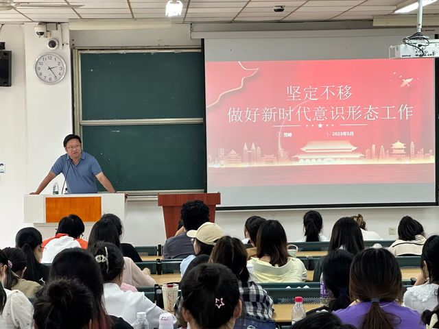 本次黨課的主題是“堅定不移做好新時代意識形態工作”。首先,賈峰部長向大家介紹了意識形態的簡要概念、重要意義和主要任務,告訴了我們意識形態對于黨的地位鞏固、維護國家安全以及實現民族復興的極端重要性。接下來,賈峰老師具體介紹了如何大力弘揚社會主義核心價值觀,要通過教育引導、輿論宣傳、文化熏陶、實踐養成、制度保障等,使社會主義核心價值觀內化為人們的精神追求,外化為人們的自覺行動。最后,賈峰老師對新時代加強意識形態工作做解讀,期望青年學生鑄牢意識形態安全防線,增強自己的使命感和社會責任感。