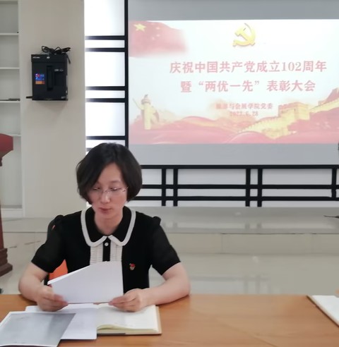 首先,學院在2號樓407召開“兩優一先”表彰大會。學院全體教師黨員、部分學生黨員代表參加會議。