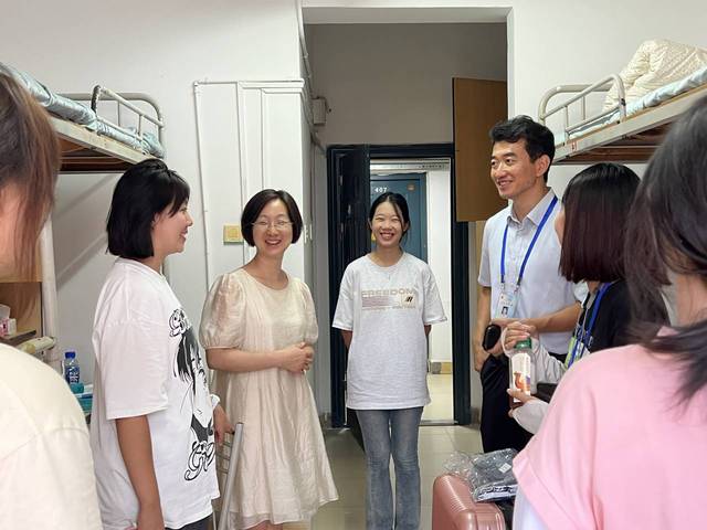 早上七點,志愿者來到報道集合點,為迎新工作做好準備,確保各流程分工明確,細致周到。引導組在香怡北門帶領新同學到指定地點報到和住宿費的繳納;咨詢組負責新生的注冊,并收集檔案資料;接待組的志愿者幫忙搬運行李,將新生帶到宿舍樓。迎新工作如火如荼,到處都是志愿者們忙碌的身影。烈日炎炎,來來回回的接送沒有使他們懈怠工作,依舊熱情接待每一位到來的新生,不厭其煩地回答每位家長、學生提出的各種問題。下午,旅游與會展學院黨委書記黃雄英、黨委副書記孫靜宇、學工辦副主任董敏深入新生宿舍開展走訪活動。學院領導老師與同學們進行了親切的交流,詳細詢問同學們的報到情況、入住情況和到校感受。