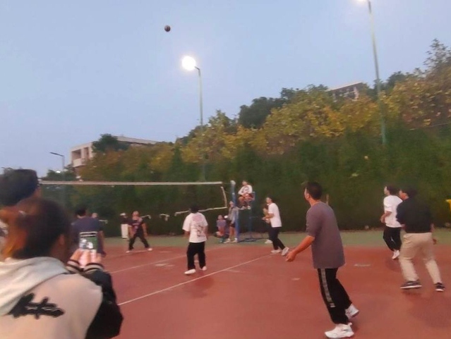 當(dāng)一聲清脆的哨響拉開比賽的序幕,運動員們展開了激烈的比拼。隨著生物院鏗鏘有力的發(fā)球全場氣氛瞬間被引燃,加油聲、吶喊聲絡(luò)繹不絕。彩繩飛揚,排球場上一派緊張熱烈的歡騰景象。即使在你來我往的防守與發(fā)球學(xué)院以較小分差落后于教育學(xué)但學(xué)院的隊員們依舊情緒高漲,在重整旗鼓過后以驚險的分?jǐn)?shù)差距追上,在加時賽取得第一場比賽的勝利隨著第二場比賽開始,各院男排隊員陸續(xù)入場,緊張的氛圍彌漫在賽場上。當(dāng)哨聲的再度響起,男隊員們沉著冷靜,積極應(yīng)對,在教育院分?jǐn)?shù)的步步逼近下調(diào)整心態(tài),穩(wěn)定發(fā)揮,順利拿下整場比賽的勝利。