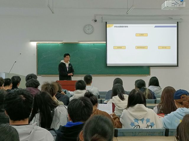首先,成曉超向學生干部介紹學生社團的概念以及性質,增強了大家對學生社團的理解,加入社團既能豐富校園生活,也增進了學生德智體美勞發展,學生可以在此發揮自己的特長,鍛煉工作能力。隨后,他講述了學生社團組織架構,以及各部門職責簡介,幫助院學生會同學更好的理解自己負責的職務。他明確了社團組織建設、社團組織管理的內要,并介紹了學生社團負責人的選舉條件,學生社團負責人必須政治立場鮮明,學習成績優秀,組織能力突出且未受過學校處分。最后,成曉超對學生社團的宣傳和活動安排提出要求,學生社團應堅持正確的輿論導向,確保發布內容積極健康,舉辦活動要經過多方審批等。