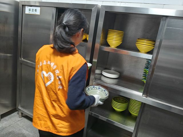 在食堂的衛生保障工作中,志愿者們發揮著重要作用。每日中午和晚上的用餐高峰時段,他們便活躍于餐具回收處,積極宣揚“光盤行動”理念,大力倡導節約糧食,提醒同學們按需取餐,避免浪費。同時,志愿者們還自發地清理餐桌,將用過的餐具整理歸類,為后續的清理工作提供便利。他們耐心引導同學們文明排隊,有序就餐,有效維護了食堂的用餐秩序。在志愿者們的努力下,食堂環境得到了顯著改善,同學們也能在整潔、有序的氛圍中享受用餐時光。