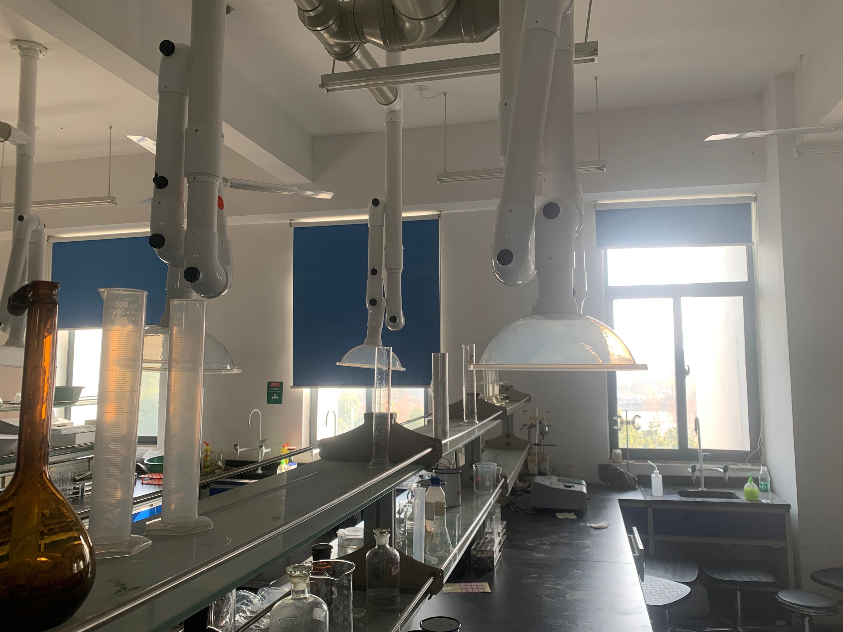 學院通風系統改造是為了應對實驗室日益增長的教學科研需求以及對實驗室空氣質量和安全標準的更高要求。改造前,原有的通風系統完全處于不工作狀態,不僅影響實驗結果的準確性,也對師生的身體健康構成了潛在重大威脅。在校領導大力支持,實驗室建設與管理處積極推進,在學院實驗實訓中心前期大量調研下,經過詳細的規劃和精心的施工后,新的通風系統采用了先進的技術和設備。實驗室廢氣排放末端更新了處理設施并更換了大功率風機,提高處理風量,大大地改善了實驗室的通排風效果以及空氣的高效凈化。改造后的通風系統有效地排除了實驗過程中產生的有害氣體和異味,大大提高了室內空氣質量。同時,穩定的氣流和適宜的溫度濕度,也為實驗設備的正常運行提供了有力保障,有助于提高實驗數據的可靠性和教學科研工作的效率。