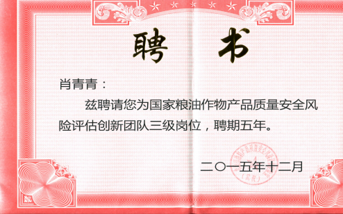 肖青青,女,博士,副教授,1984年生。2014年博士畢業(yè)于中山大學(xué),2015年1月至2017年7月進入安徽省農(nóng)業(yè)科學(xué)院工作,任助理研究員,2017年8月進入合肥學(xué)院生物食品與環(huán)境學(xué)院工作,兼任2017級碩士研究生輔導(dǎo)員,2018年9月至今擔(dān)任生物食品與環(huán)境學(xué)院食品質(zhì)量與安全教工黨支部書記,2018年12月被評為副教授,2020年1月以來同時擔(dān)任食品工程系主任、食品質(zhì)量與安全專業(yè)負責(zé)人。2017年8月至今在合肥學(xué)院生物食品與環(huán)境學(xué)院食品質(zhì)量與安全專業(yè)工作,2018年擔(dān)任食品質(zhì)量與安全教工黨支部書記,2020年擔(dān)任食品工程系主任、食品質(zhì)量與安全專業(yè)負責(zé)人。在社會學(xué)術(shù)團體層面,2015年被評為國家油料作物質(zhì)量安全風(fēng)險評估崗位專家,2020年安徽省農(nóng)產(chǎn)品安全專業(yè)委員會理事,2021年合肥市食品行業(yè)協(xié)會理事。以下是肖青青同志的個人事跡具體情況: