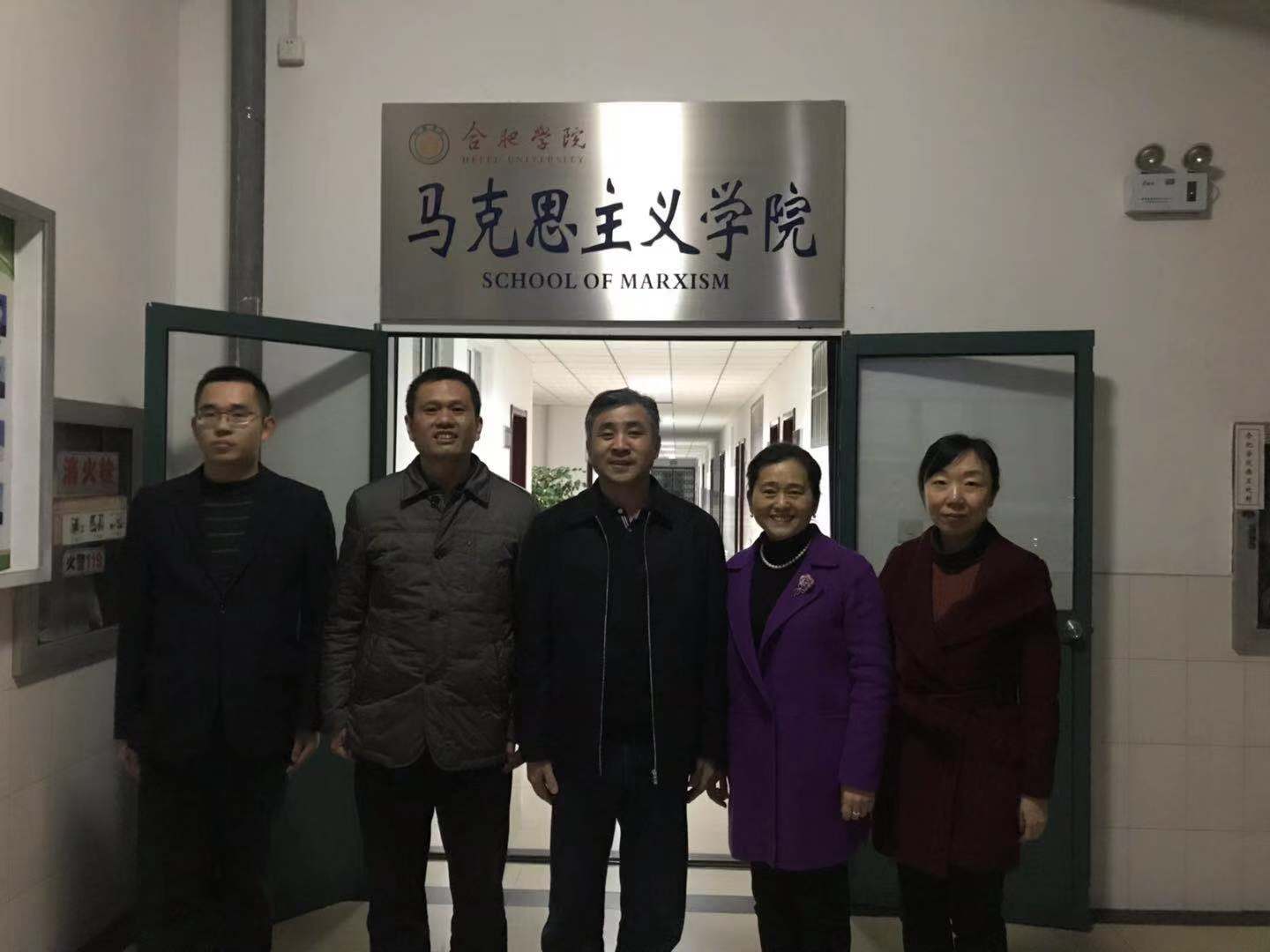| 2018年12月19日下午,合肥市委黨史研究室主任翟新明一行3人到合肥學院調研,與合肥學院紀委書記洪家友、宣傳部部長劉樟樹、馬克思主義學院院長胡艷萍就開門辦史、黨史進校園、高校思想政治教育工作進行了廣泛深入的交流,取得良好效果。(馬克思主義學院)